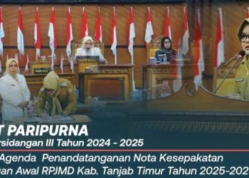 TANJABTIM, Salimbai.id – Dewan Perwakilan Rakyat Daerah (DPRD) Kabupaten Tanjung Jabung Timur bersama Pemerintah Kabupaten Tanjung Jabung Timur resmi menandatangani Nota Kesepakatan terhadap Rancangan Awal Rencana Pembangunan Jangka Menengah Daerah (RPJMD) Tahun 2025–2029. Penandatanganan dilakukan dalam Rapat Paripurna...