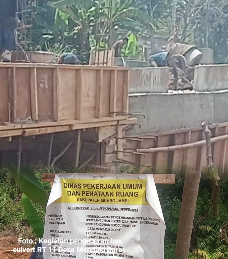 Padahal pelaksanaan proyek pembangunan box culvert di RT 11 Desa Mendalo Darat tersebut sudah berada ditahap pengecoran beton.