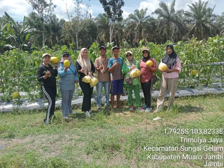 Melon Tidak hanya menjadi bahan makanan yang dibeli di pasar, buah melon kini naik kelas menjadi pengalaman wisata. Di Desa Trimulya Jaya, Kecamatan Sungai Gelam, Kabupaten Muaro Jambi.