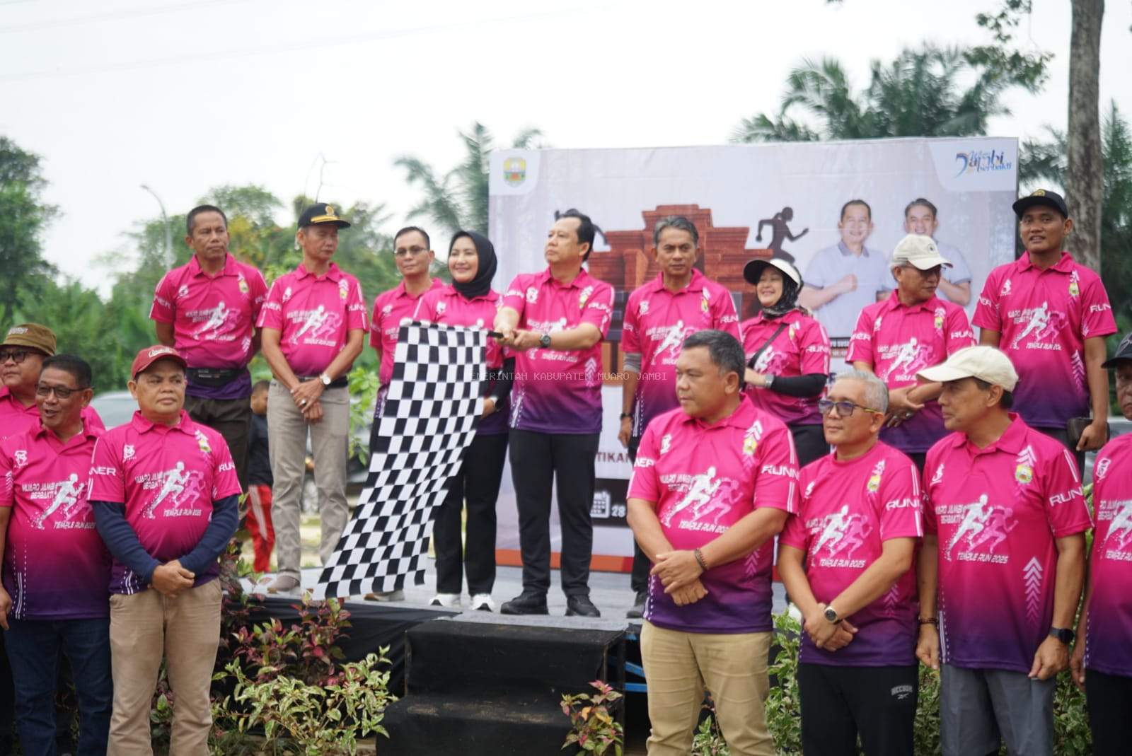 MUARO JAMBI, Salimbai.id – Bupati Muaro Jambi, Dr. Bambang Bayu Suseno, bersama Wakil Bupati Junaidi H. Mahir, didampingi Sekretaris Daerah Budhi Hartono, Ketua TP PKK Ririn Novianty, dan Wakil Ketua TP PKK Novi Astrianti, secara resmi melepas Temple Fun Run dalam rangka menyambut Hari Ulang Tahun (HUT) Muaro Jambi di kawasan KCBN Candi Muaro Jambi, Kecamatan Maro Sebo, pada Minggu (28/9/2025).