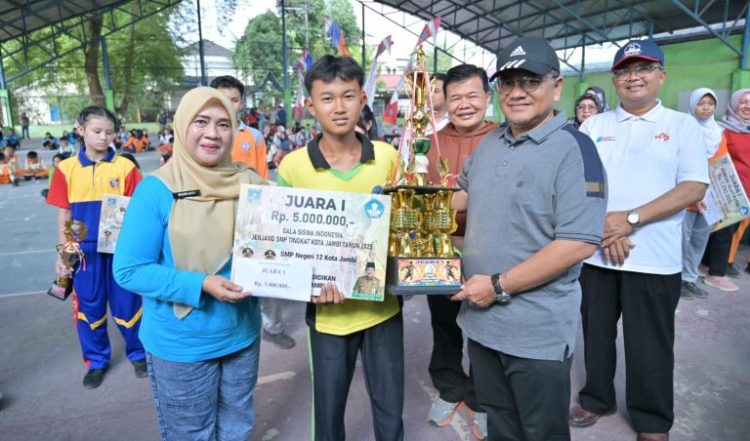KOTA JAMBI, Salimbai.id – Wali Kota Jambi, Dr. dr. H. Maulana, M.K.M., menyerahkan langsung hadiah kepada para pemenang Festival Lomba Seni dan Sastra Siswa Nasional (FLS2N), Olimpiade Olahraga Siswa Nasional (O2SN), dan Gala Siswa Indonesia (GSI) jenjang SMP tingkat Kota Jambi Tahun 2025, Jumat pagi (25/7/2025).