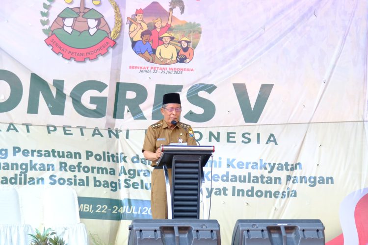 Wakil Gubernur Jambi, Drs. H. Abdullah Sani, M.Pd.I, hadir dalam pembukaan Kongres ke-V Serikat Petani Indonesia (SPI), yang digelar di Kota Jambi, Selasa (22/07/2025). Acara yang berlangsung mulai 22 hingga 24 Juli 2025 ini diselenggarakan di Asrama Haji Provinsi Jambi, Kecamatan Kota Baru, Kota Jambi.