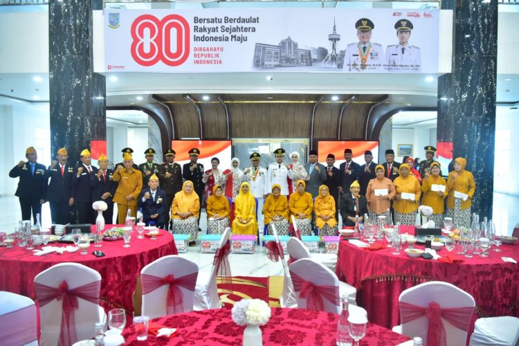 Kota Jambi, Salimbai.id – Usai memimpin Upacara Pengibaran Duplikat Bendera Pusaka Merah Putih dalam rangka Peringatan Hari Ulang Tahun (HUT) Kemerdekaan Republik Indonesia ke-80 Tahun 2025, Wali Kota Jambi Dr. dr. H. Maulana, M.K.M, didampingi Wakil Wali Kota Jambi Diza Hazra Aljosha, S.E., M.A, menyerahkan tali asih kepada anggota Legiun Veteran Republik Indonesia (LVRI) Kota Jambi. Acara ini berlangsung di Grha Siginjai, Kantor Wali Kota Jambi, Minggu (17/8/2025).